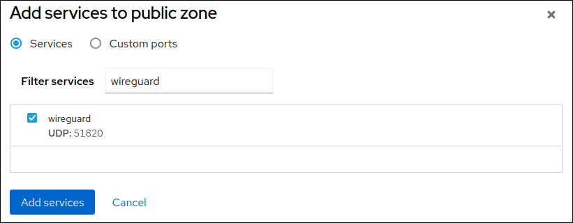 wireguardentry from the list.- Click Add services.