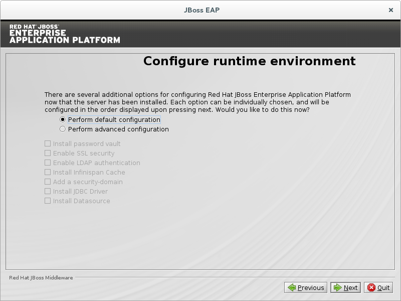 Figure B.22. Environnement de runtime du programme d'installation de JBoss EAP - Par défaut