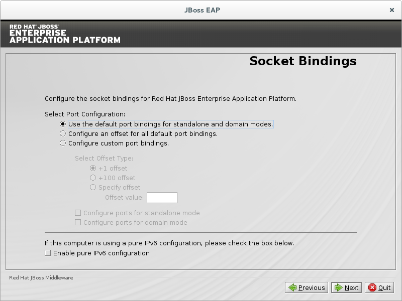 Figure B.10. Excentration de configuration du programme d'installation de JBoss EAP pour les sockets par défaut
