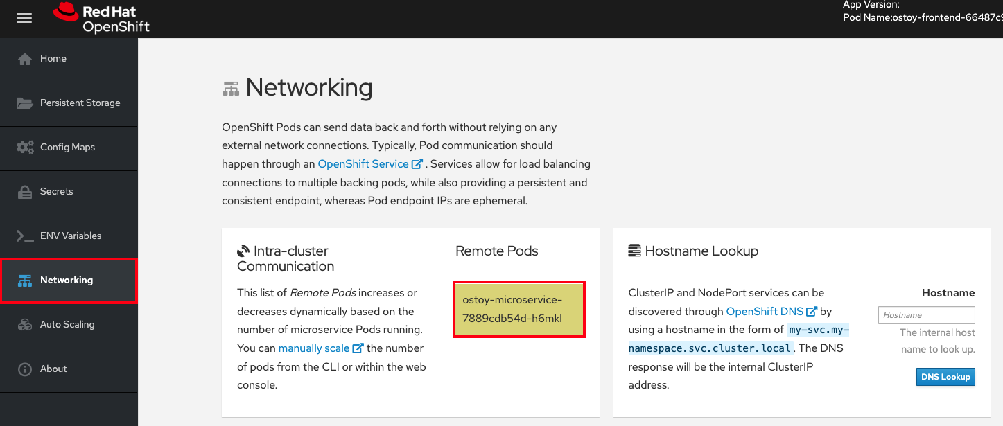 En outre, vous pouvez confirmer qu’il existe deux pods en sélectionnant Networking dans le menu de navigation de l’application OSToy. Il devrait y avoir deux boîtes colorées pour les deux gousses.