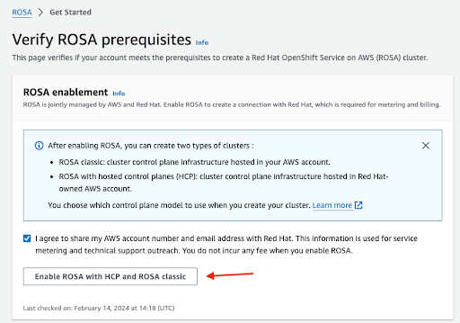 - Il ne vous sera pas facturé en activant le service dans cette étape. La connexion est faite pour la facturation et le comptage qui n’aura lieu qu’après le déploiement de votre premier cluster. Cela pourrait prendre quelques minutes.