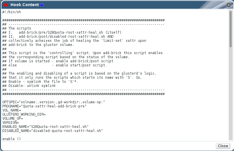 - Select a hook with content type Text and click . The Hook Content window displays with the content of the hook.