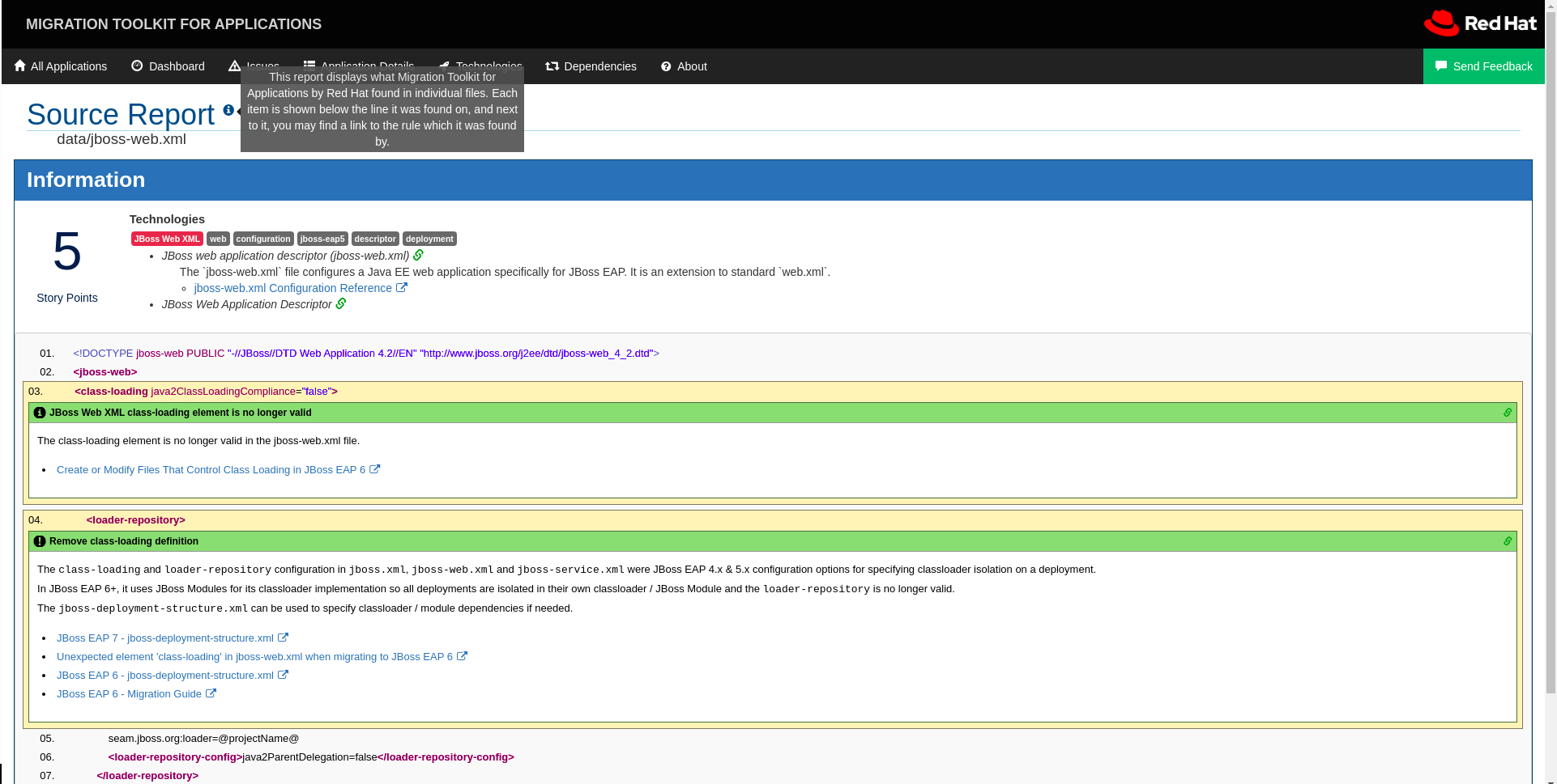 jboss-web.xml リンクをクリックして、ソースレポート を表示します。