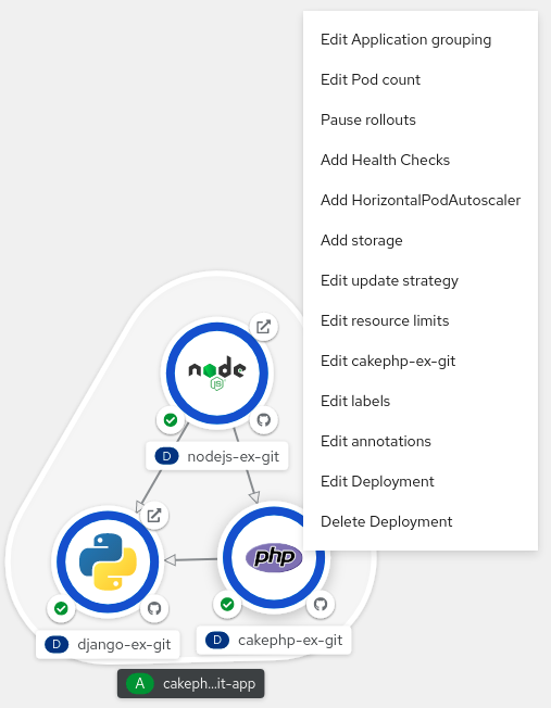 15.1. Developer パースペクティブを使用したアプリケーションの削除 リンクのコピーリンクがクリップボードにコピーされました!