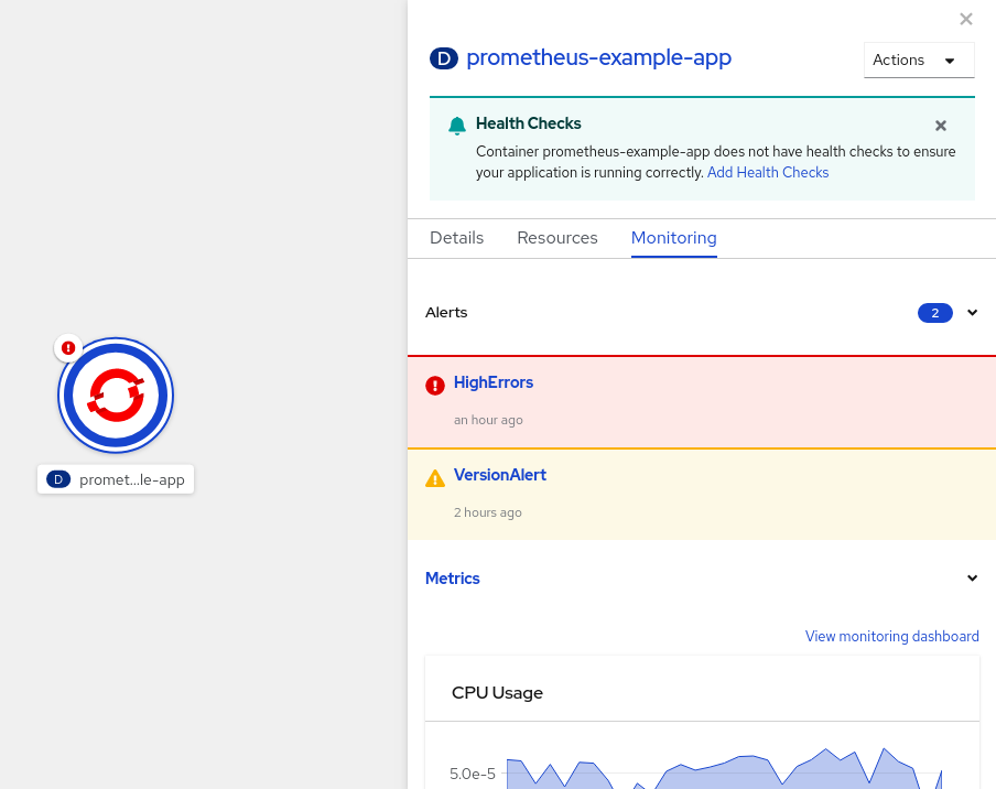アプリケーションを作成したら、Web コンソールを使用して プロジェクトまたはアプリケーションのメトリクスを監視 できます。Web コンソールを使用して、アプリケーションを 編集 または 削除 することもできます。