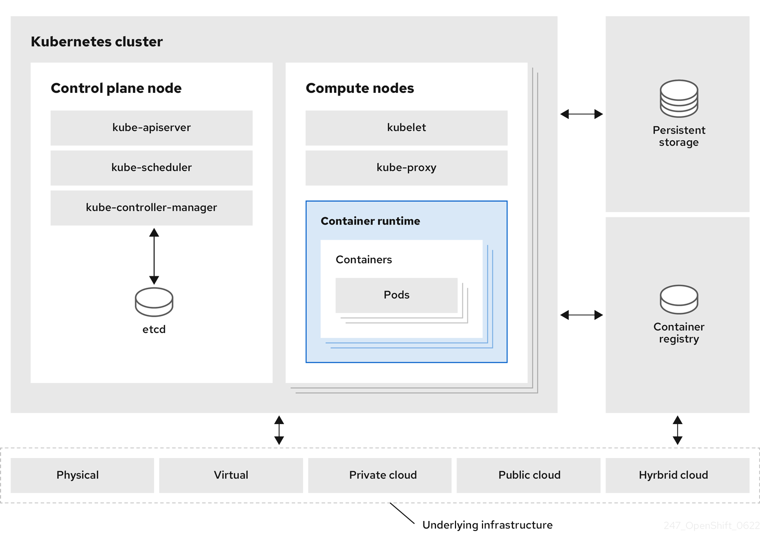 Kubernetes は、OpenShift Container Platform のコアコンポーネントです。OpenShift Container Platform は、コンテナー化されたアプリケーションの開発および実行に使用できます。Kubernetes を基盤とする OpenShift Container Platform には、大規模な通信、ビデオストリーミング、ゲーム、銀行取引、およびその他のアプリケーションのエンジンと同様のサービスを提供する技術が組み込まれています。OpenShift Container Platform を使用することで、コンテナー化されたアプリケーションを単一のクラウドを超えてオンプレミスおよびマルチクラウド環境へと拡張することができます。