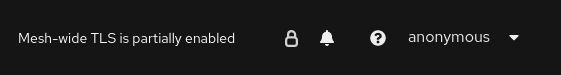 サービスメッシュ全体で厳密に mTLS が有効化されている場合、Kiali はマストヘッドの右側にロックアイコンを表示します。これは、メッシュ内のすべての通信に mTLS が使用されていることを意味します。
