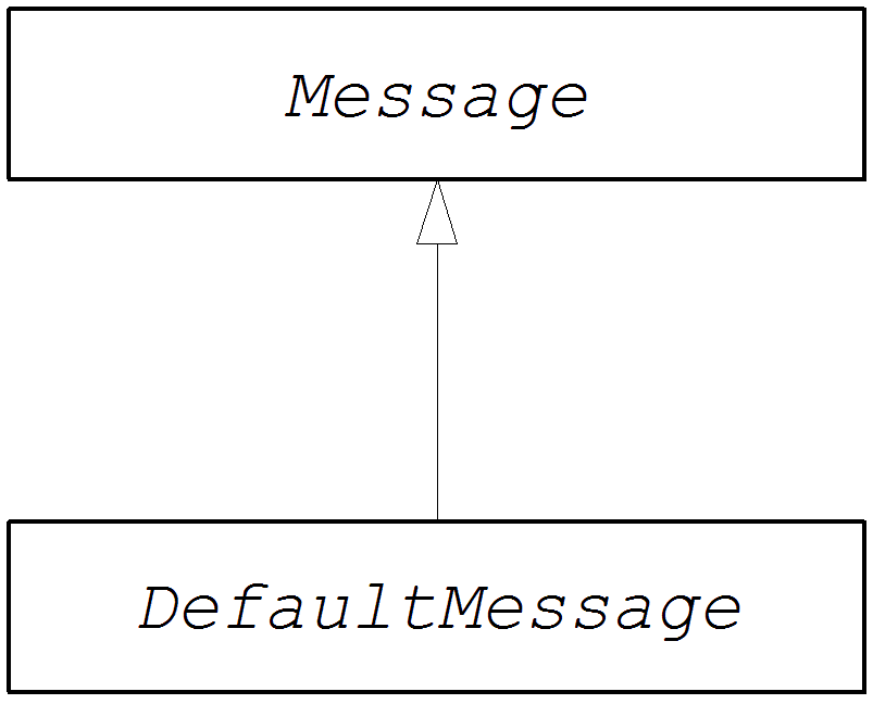 org.apache.camel.Message タイプのインスタンスは、あらゆる種類のメッセージ (In または Out) を表すことができます。メッセージタイプの継承階層を 図44.1「メッセージの継承階層」 に示します。コンポーネントにカスタムメッセージタイプを常に実装する必要はありません。多くの場合、デフォルトの実装 DefaultMessage で十分です。