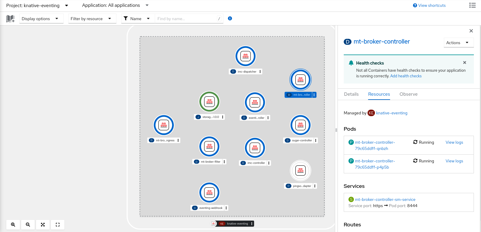mt-broker-ingress、mt-broker-filter、およびmt-broker-controllerコンポーネントを表示します。
