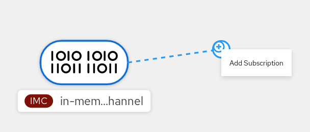 - このサービスが、チャネルと同じ namespace またはプロジェクトにある Topology ビューで利用可能な場合は、サブスクリプションを作成するチャネルをクリックし、矢印をサービスに直接ドラッグして、チャネルからそのサービスにサブスクリプションを即時に作成します。
