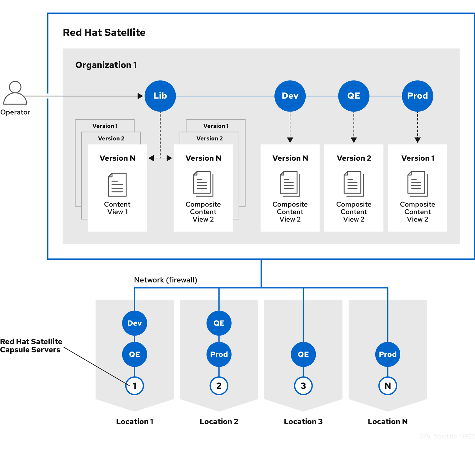 コンテンツは、必要に応じて環境パスの次のライフサイクル環境にプロモートできます。アプリケーションライフサイクルでコンテンツビューをある環境から次の環境にプロモートすると、Satellite はリポジトリーを更新し、パッケージを公開します。たとえば、アプリケーションのあるバージョンの開発が終了したら、そのバージョンをテスト環境にプロモートし、次のバージョンの開発を開始できます。