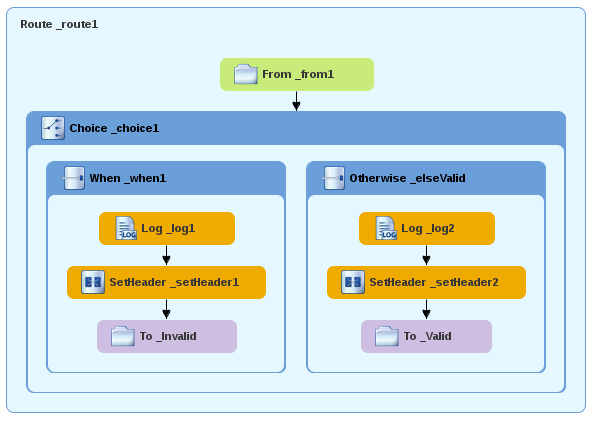 유효한 주문(즉, When_when1 노드에 설정된 Cryostat 표현식과 일치하지 않는 모든 XML 메시지)을 처리하도록 경로의 다른 분기를 추가하고 구성하려면 다음을 수행합니다.