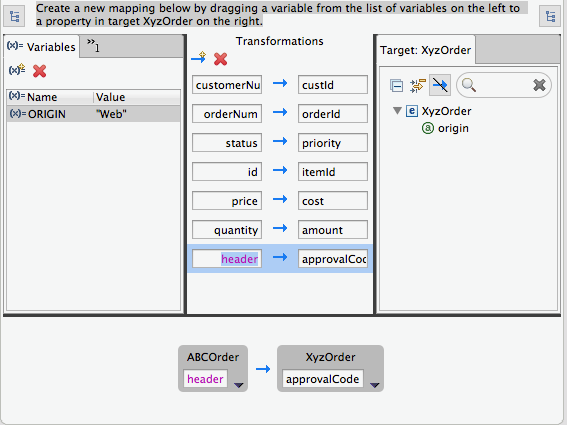 데이터 항목을 매핑 패널에서 새로 생성된 매핑의 대상 필드로 끌어서 놓습니다.approvalCode