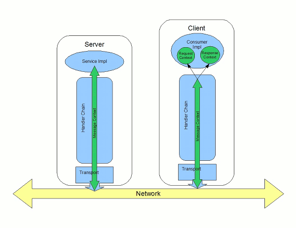 컨텍스트는 JAX-WS 애플리케이션의 모든 수준에서 사용할 수 있습니다. 그러나 메시지 처리 스택에서 컨텍스트에 액세스하는 위치에 따라 미묘한 방식으로 다릅니다. JAX-WS Handler 구현은 컨텍스트에 직접 액세스할 수 있으며 여기에 설정된 모든 속성에 액세스할 수 있습니다. 서비스 구현에서는 삽입된 컨텍스트를 사용하여 컨텍스트에 액세스하고 APPLICATION 범위에 설정된 속성만 액세스할 수 있습니다. 소비자 구현은 APPLICATION 범위에 설정된 속성만 액세스할 수 있습니다.