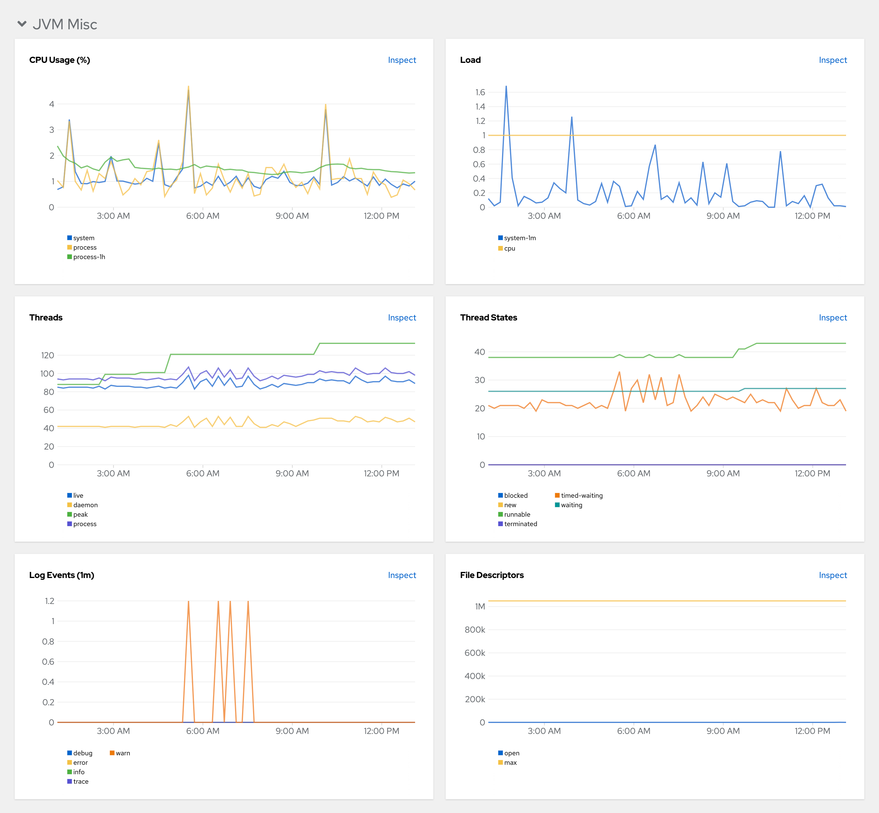 OpenShift Dev Spaces를 구성하여 JVM 메모리와 같은 JVM 메트릭을 노출하고 OpenShift Dev Spaces Server에 대한 클래스 로드를 구성할 수 있습니다.