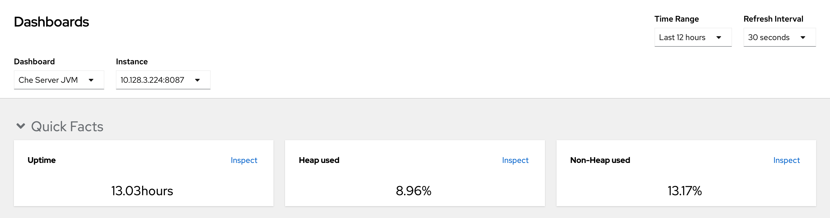 Che 서버 JVM 으로 이동하여 대시보드 패널에 데이터가 포함되어 있는지 확인합니다.
