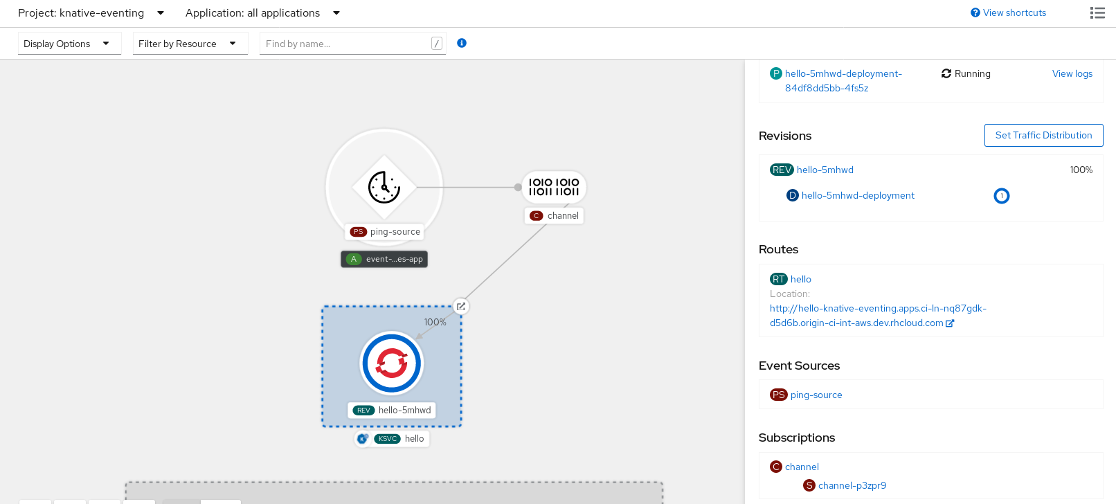 - 이벤트 싱크(예: Knative 서비스) 및 채널을 생성했습니다.