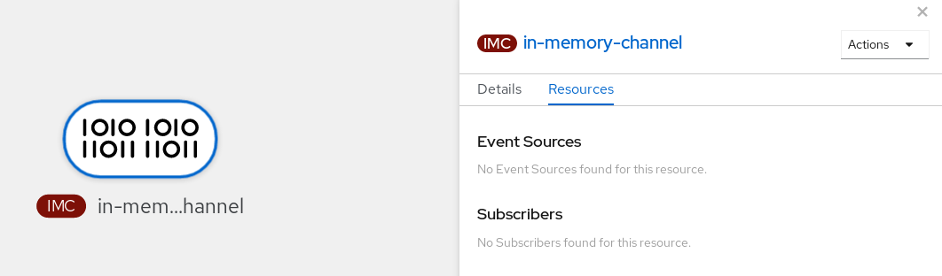 오브젝트를 생성할 수 있습니다.kn channel create mychannel --type messaging.knative.dev:v1:InMemoryChannel