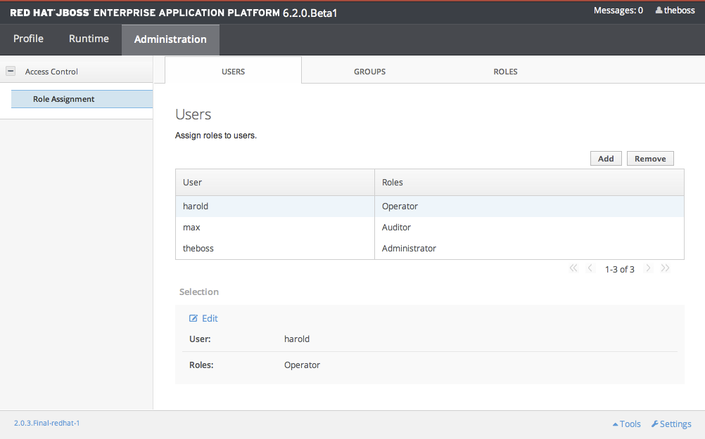 在管理控制台里可通过下列步骤来配置用户和角色: