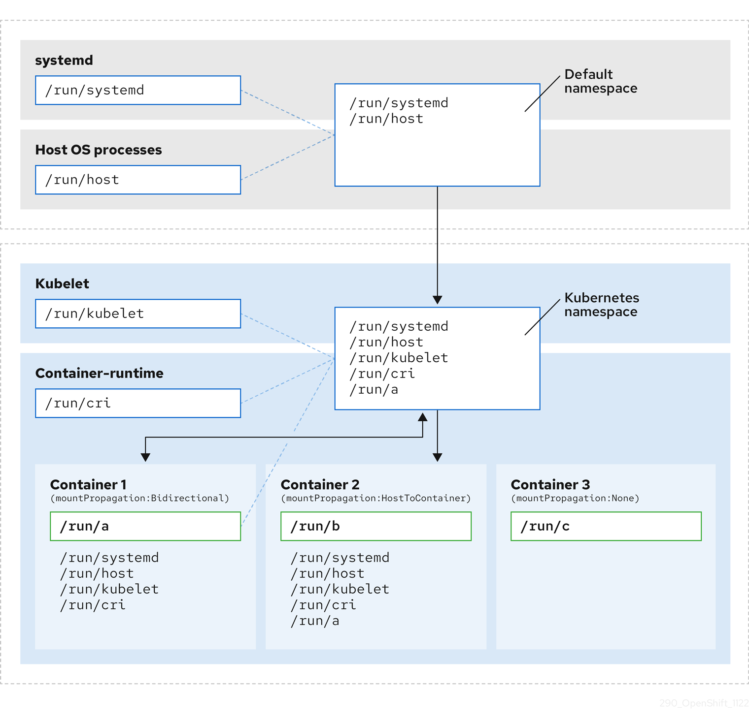 - systemd、主机操作系统进程、kubelet 和容器运行时都可以访问所有挂载点和可见性。