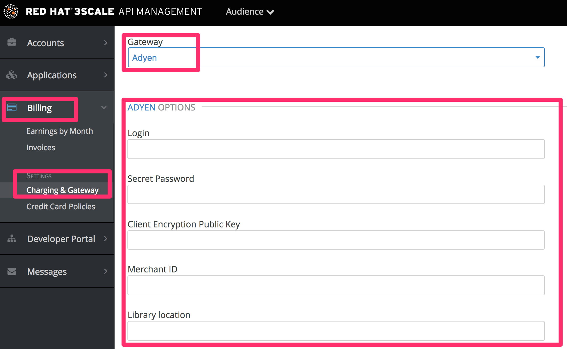 设置您的支付网关是关键步骤,可使信用卡收费使用您支付的 API。您可以将多种替代支付网关用于您的 3scale 帐户。这里我们介绍了 Adyen 的步骤。
