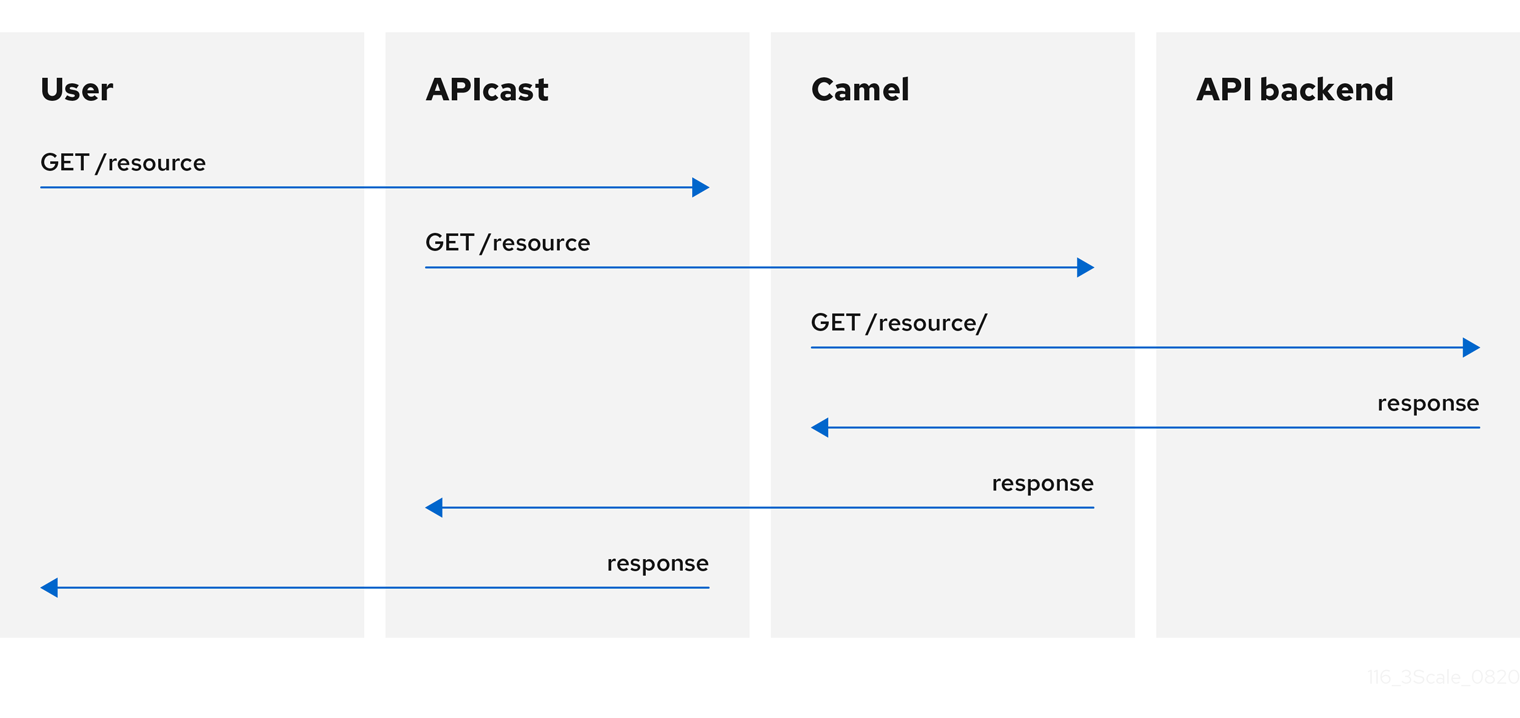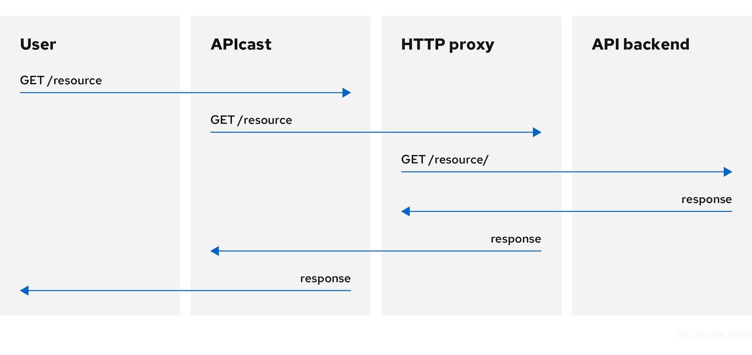 每个 APIcast 实例都有自己的本地授权缓存。第一个调用总是针对 3scale 授权,然后为特定服务、指标和凭证传递调用 API 后端。