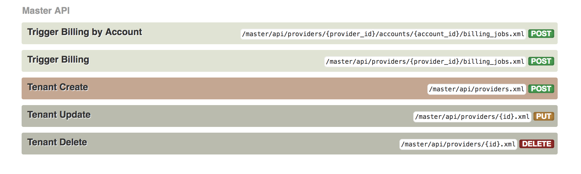 您可以通过 Master Admin API 调用来管理帐户。有关这些调用的详情,请参考 Master API