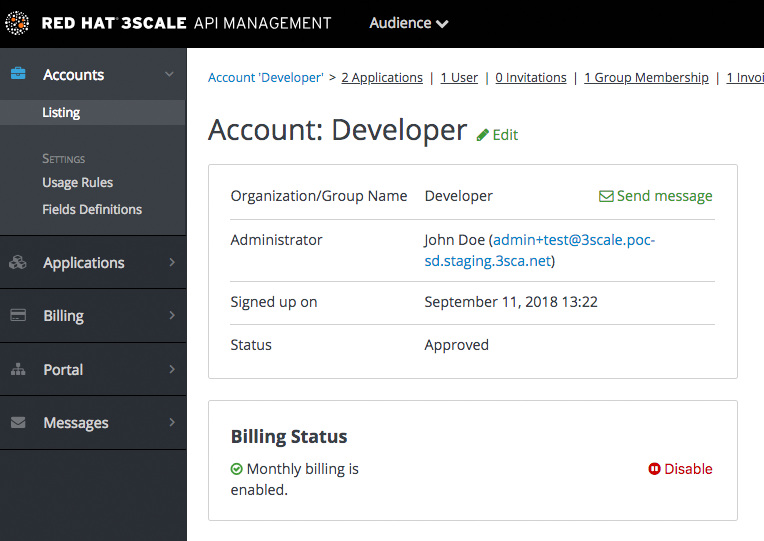 24.2. 向开发人员发送内部消息 在帐户配置文件页面中如下方所示,单击消息图标。 View larger image 此处创建的消息将同时发送到帐户系统仪表板,帐户中的所有开发人员都将看到该仪表板,并通过通过电子邮件发送给开发人员帐户中具有管理员状态的人员。 前一个下一个