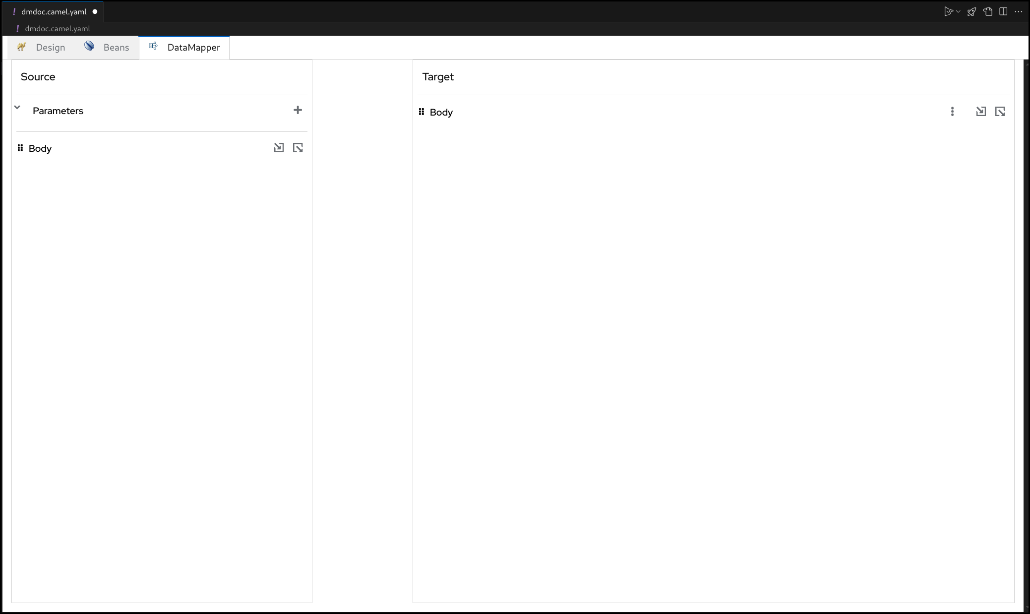 目前,DataMapper 只支持 XML 模式来渲染数据结构,并在内部生成一个 XSLT 步骤来在运行时执行配置的数据映射。虽然您可以使用映射到 XSLT 参数的 Camel 变量和/或 Message Headers 来消耗多个 XML 文档,但输出只是 Camel 消息正文。