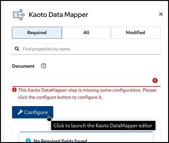 点 Kaoto DataMapper 步骤的 Kaoto DataMapper 步骤来打开配置表单。