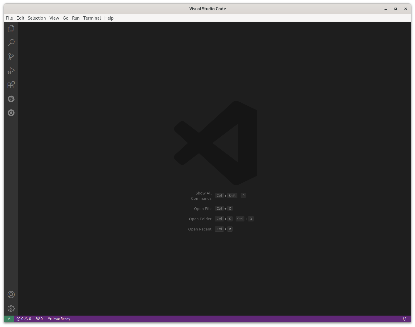 如果您尚未这样做,请打开 Visual Studio Code 实例。您可以通过在计算机上找到右启动程序,或打开命令 shell 并执行代码来完成此操作。