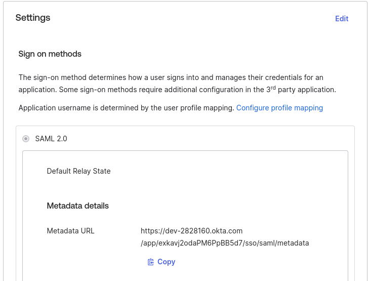 接下来,保存此 SAML 集成并记录其元数据 URL: