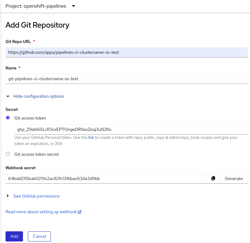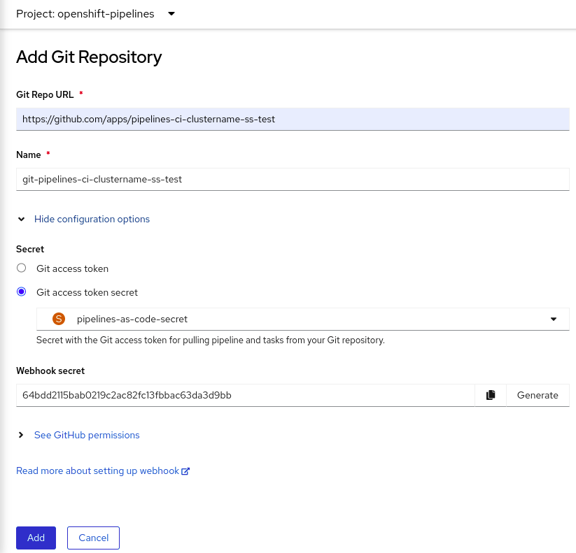 2.1.3. 添加包含管道的 GitHub 仓库 复制链接链接已复制到粘贴板!