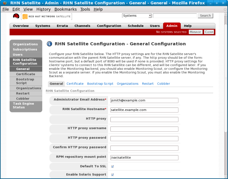 点 按钮确认更改。 - 最后,您需要创建您的用户端系统需要订阅的基本频道。这是因为,RHN 并不提供 UNIX 的内容,您无法使用